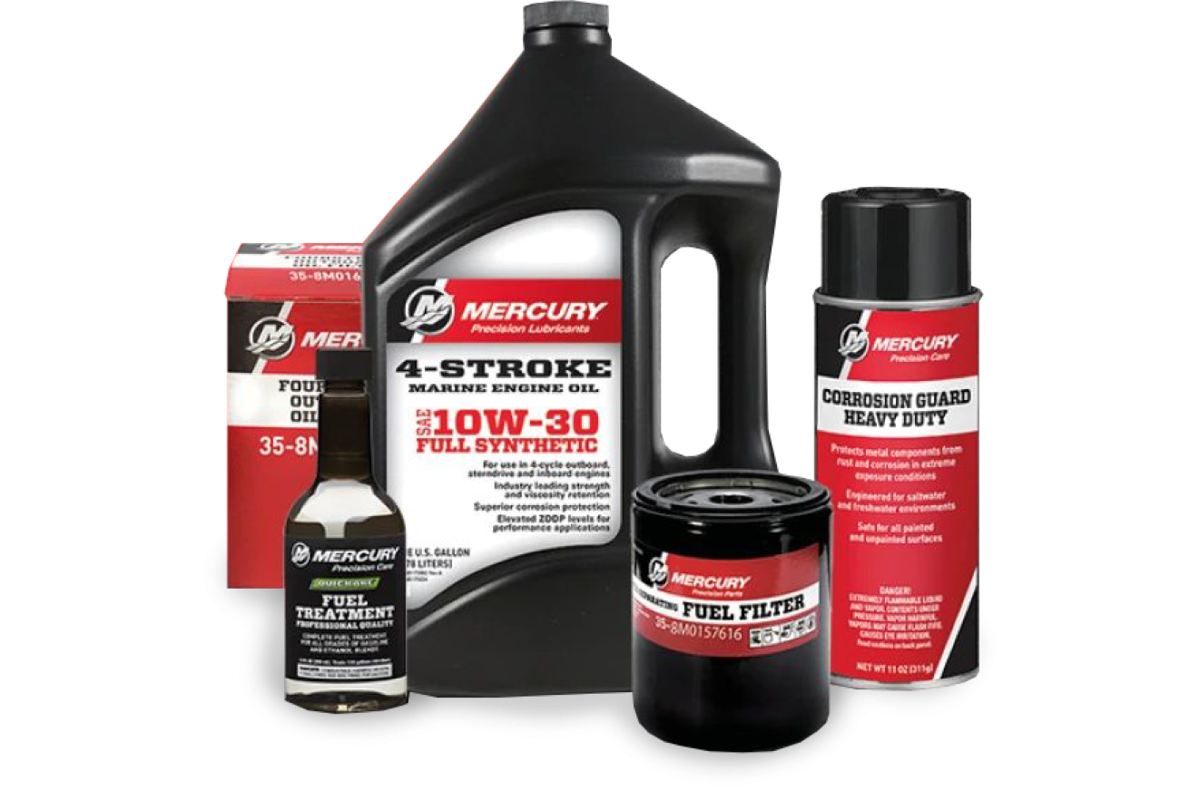 Stort reservedelslager med filtre, impeller, olie m.v. til din motor i båden.