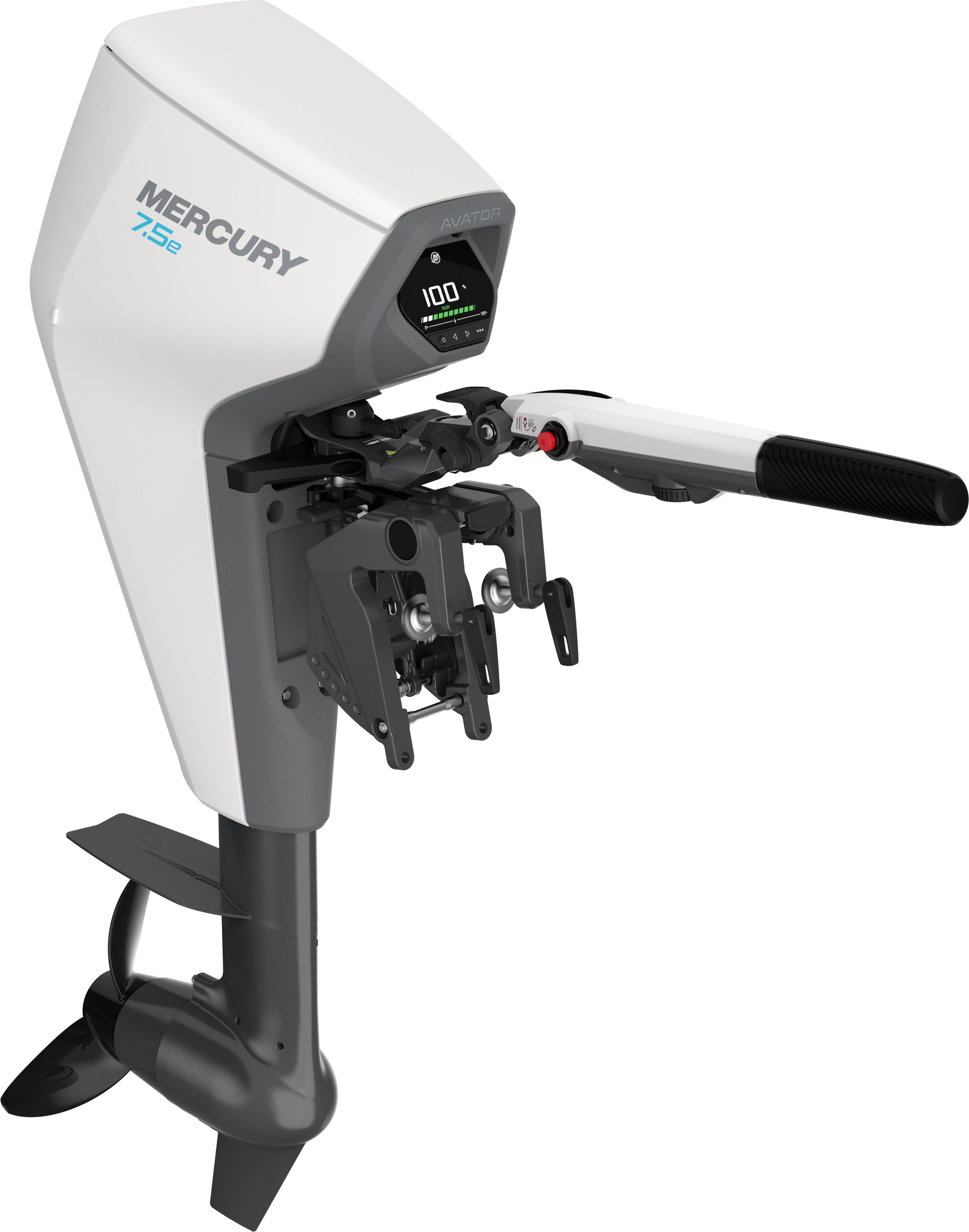 Mercury Avator E7.5 EXLH El-påhængsmotor Batteri, kabler og andet udstyr er ikke inkluderet. Brug vores konfigurator for at bygge din egen pakke inklusiv det udstyr du skal bruge, og den batterikapacitet du ønsker.