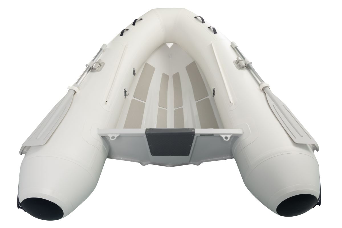 Udarbejdet i kraftig PVC med aluminiums RIB monteret med anti-skrid pads på den V-formede dørk for større sikkerhed ombord. Justerbar bænk, fortøjningsringe på ydersiden samt flere bærehåndtag.