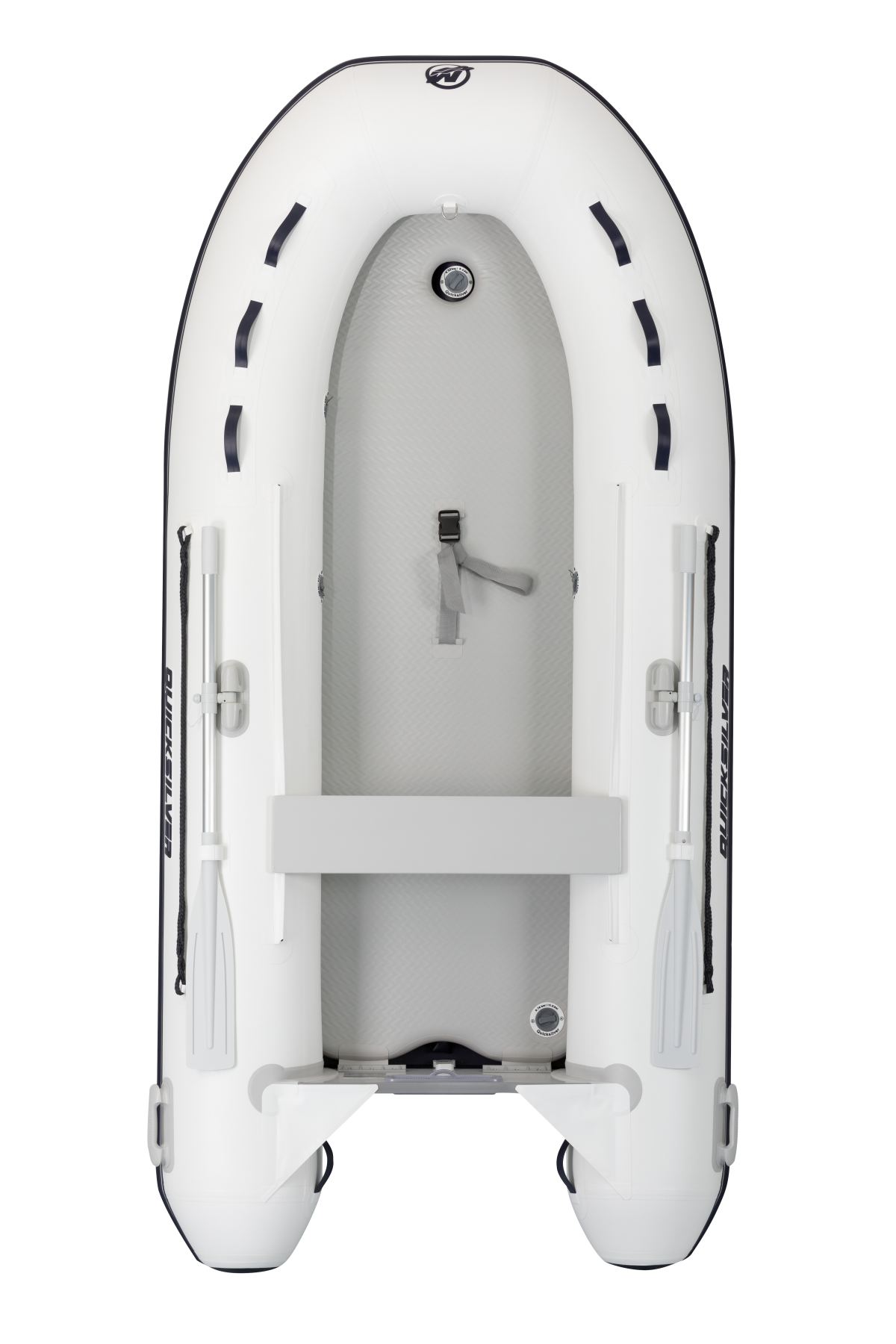 Her får du en luksus gummibåd, der både egner sig til hygge og leg på vandet, og til at have med på en større båd. Udarbejdet i robust hvid PVC med kraftig blå Quicksilver markering.